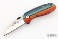 We had so much fun with the first runs of the June Bug that my wife suggested that we do another run with our Midnight Blue and Black Richlite handles. That was a great idea. And then she said why don’t you put our Deep Pocket Clip on them? All I can say is that she has some great ideas. And you’re going to agree when you see the result. Now like I said when we first introduced them, I don't know if cute was a word I've ever used to describe one of my knives, but in this case for the Emerson June Bug, cute seems to be a pretty appropriate description and now it’s, “Cuter than Cute.” This little knife is probably our ultimate EDC presentation. Overall, it's just under five and a half inches long. It's got a 2.3-inch blade and a 3.2-inch handle and that makes it perfect for everyday carry use. It fits snuggly down in the pocket or with the Emerson clip, it can be carried just like one of our other knives clipped to your pocket. It has a Wharncliffe-style blade with a straight, razor-sharp edge. Now, I know that I called this knife cute, and it is on the smaller side of anything we've ever done. In fact, it might be the smallest knife we've ever made, but don't underestimate its cutting performance. Don’t kid yourself, this is a real deal knife because after all, when all is said and done, it's still an Emerson.