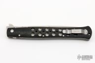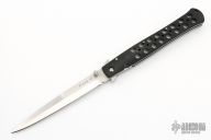 This Ti-Lite features a satin finished blade with false top edge and single thumbstud. Black polymer handle with stainless steel liners and tip up clip. Includes the original box. Excellent Condition.