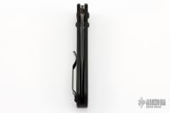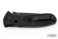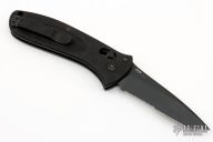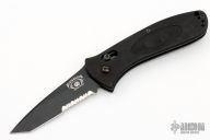 This Blackwater Gear knife made by Benchmade features a black tanto partially serrated blade. The handle has black aluminum scales, black stainless steel liners and tip up reversible clip, lanyard hole at the butt, saftey on the spine. Has some light scuffs, otherwise excellent condition.