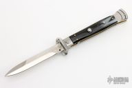 Angelo Campolin Sr. was born in 1923 in Maniago, Italy. He worked on perfecting his knife making skills before WWII and at this time made his first switchblades. After the war, in 1947 he started his company and made 30 stilettos with the marking “Angelo Campolin”. In the 1970’s Angelo’s son Gianni started to work in the company and they were specializing in folding hunting knives and also manual folding stilettos for the Robert Klaas company in Solingen Germany with their Kissing Cranes mark. In 2002 American switchblade collectors Dan Fuller, Brad West, and Tim Zinser were visiting Maniago and enjoying a few glasses of wine in a bar with Angelo Jr. and Gianni. The discussion was about a new name for some knife projects they wanted to pursue. It was Brad West that suggested the tang stamp should be AGA, for Angelo, Gianni, Angelo, thus representing three generations in the knife making business. The Campolins liked it and it stuck. In the beginning it was just a few items, but grew to the point where now there are 12 models and different scale options. The goal has been to offer quality switchblades using the old methods and traditions. Being a collector himself, Angelo Jr. knows what others like. The company headquarters has moved to Austria with production still in the original Maniago shop, as well as the others in Maniago that produce the knives for A.G.A. Campolin.