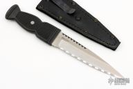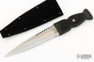 This Culloden by Cold Steel features a satin finished blade with fileworked spine/thumbrest, fully serrated edge, .117" blade stock and 1" blade depth, hidden tang construction. The handle has a rubber grip. Comes with original sheath. Excellent condition.