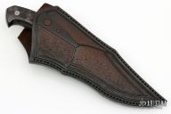 This magnum from the Sobral Brothers features O1 steel that has been forged into a beautiful finished product. It has a clip point recurve blade with a fuller and false top edge, .257" blade stock and 1.507" blade depth, full tapered tang integral construction. The handle features burl scales with laser engraved pins. Comes with a brown leather sheath and a leather zippered case. New from maker.