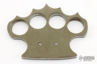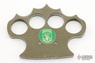 This set of knuckles by Rob Dalton are made of green G-10 and steel, 437" thick. The bottom says "BAD MOTHER FUCKER". Has a couple scuffs, otherwise excellent condition.