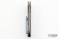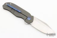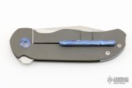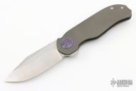 This Mini Sligo by Collins Custom Knives features a satin finished drop point blade with notched flipper. The handle has a bead blasted titanium frame with a Timascus pivot, Mokuti tip up clip with hidden screws, backspacer and handle screws. Comes with a zippered case and COA, dated 9-19-18. Excellent condition.