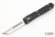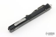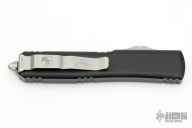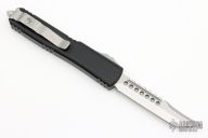 This Ultratech by Microtech Knives features a stonewashed Hellhound blade with satin flats and false top edge. The handle has a black aluminum frame with tip down blasted stainless steel clip and hardware. Comes with original box and papers. 11/2022, S/N 885. Excellent condition.