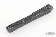 This model of the Manticore-X comes equipped with a two-tone blackwash finished recurve blade and a breakthrough gray aluminum handle. The Heretic Knives Manticore-X is a full size Out-the-Front knife with a clean and functional aesthetic. It features a contoured aluminum chassis with jimping all along the sides. This lightweight and capable OTF knife opens and closes smoothly, making for an excellent every day or tactical carry. Comes with a ball-bearing glass breaker and a deep carry pocket clip. Has some scuffs, otherwise excellent Condition. Comes with original box and lube.