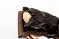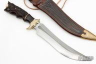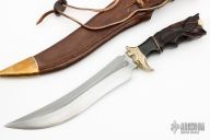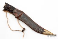Every knife I make is a one of a kind. I take much time in producing each one.I rely on skills and not technology.But I do have basic power tools like drill press,belt sanders,etc. My gas forges are all homemade. I have one stand up forge for general forging and damascus. I have several small forges for small stuff and one long horizontal forge with 2 burners.I can use either 1 or 2 burners depending on the blade length.. This is the forge I use for heat treating.Just about all of my knives are hand sanded.Every knife is forged unless I specifically say otherwise.My damascus is hand forged.Most carbon steel blades I make have a clay heat treat.My knives are forged first,then rough ground,filed and heat treated.I then refine the blade by belt sander.Then it is hand sanded.I often put a lot of carving and texturing on my guards and handles.Sometimes I have to make a special tool to get the look I want.