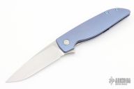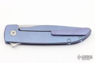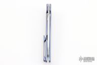 This Rask by John Grimsmo of Grimsmo Knives features a stonewash finished blade with notched flipper. The handle has a cross hatch milled, anodized and tumbled titanium frame with matching tip up clip that has hidden screws, titanium barrel spacers and screws. Numbered #1533 on the spine of the blade. Includes original box and COA dated January 18, 2023. Excellent condition.