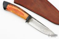 "I start making knives in the middle of 2017 just for fun. After I lost my job at the end 2017 I started to focus on making knives full time. I was learning from other makers and blacksmiths practicing and testing many types of steels. I primary use W2, O1, and sup9a (5160), secondary D2 (for corrosion resistance) and M2 for highly wear resistance. I chose W2, O1, and sup9a primary because its very easy to get very fine grain in the steel. That means it is very easy to sharpen but long lasting edge retention and upgraded toughness level. Those are the characteristics loved so much by chefs and hunters that need clean cutting knives. For handle material I like natural exotic wood and usually horn, also fossil ivory with non ferrous metal like brass, copper and some bronze."