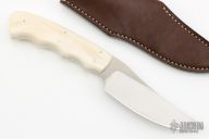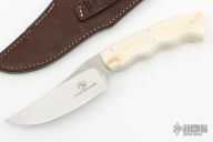 This knife is part of the "Predator Series" of knives by Arno Bernard. This piece has warthog tusk scales. Hand rubbed satin finish blade with .123" blade stock and 1.305" blade depth, full tapered tang construction. Includes a brown leather sheath, the original and papers.  The knife split the sheath otherwise the knife is in excellent condition.
