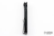 Like its larger sibling, the Shizuka noh Ken knife has an Osoraku style blade, made famous by the 16th century Samurai warlord Takeda Shingen. In the closed position, the blade fits cleanly in the slim handle, ready to be deployed using the thumb disk. A black G-10 slab handle with a stainless steel frame lock provide both strength and grip. Working in tandem with the frame lock is a manual LAWKS safety that ensures virtual fixed blade safety and performance with the slide of the lever. The final piece, rounding out an impressive folding knife, is the discrete deep carry pocket clip.