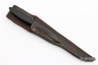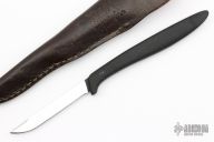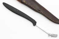 This bird and trout by Gerber features a mairror polished blade with a sharpened top edge and a hidden tang construction.  .045" blade stock and .401" blade depth. The handle has a cast aluminum grip. Comes with a brown leather sheath. Excellent condition.