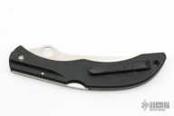 This Vintatge Spyderco Catcherman (around 2008) features a satin finished upswept partially serrated blade with thumbhole. The handle is black FRN with integral tip up clip, lanyard hole at the butt. Nice lockup and blade seating. Excellent condition.
