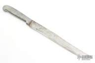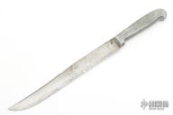 Frank Richtig made knives for about 50 years from the 1930's to the 1970's. He was born in Nebraska in 1887, and became an apprentice blacksmith in 1905, and in 1916 began experimenting with electric heat treating of steel. in 1925 he started producing knives. He produced many styles of cast aluminum handled kitchen knives as well as aluminum and regular handled hunting knives. His main credit would be in his secret tempering method. Where ever he'd set up his wares he'd bring an anvil along and proceed to cut a piece of metal in two and still retain an edge sharp enough to shred paper. In 1936 Frank Richtig appeared in Ripley’s Believe It or Not after using one of his knives to cut the lock from a jail cell. Richtig’s claim to fame, so to speak, was in his blades. Having the proper amount of hardness to cut through steel and iron, and yet be able to maintain a fine cutting edge. It is said that Richtig’s method of treating the steel, a closely guarded secret while he was alive, is is something he took to the grave with him. One of his other unique features was his cast aluminum handles. In 1938 he was declared a Master Ironsmith by the National Blacksmith and Welders Association. Frank passed away in 1977.