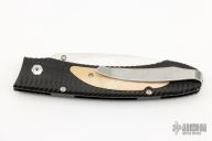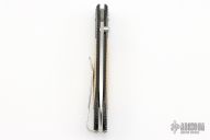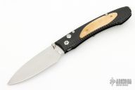 This E6-6 by William Henry features a hand rub satin finished blade with single thumbstud. The handle has a black aluminum frame with mammoth ivory inlays and tip up clip. Has a few light scratches, otherwise excellent condition.