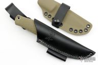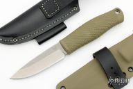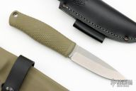 This Puukko from Benchmade features a drop point tumble finished blade with a hidden tang construction .139" blade stock and 1.107" blade depth. The handle has a green rubber handle. Includes leather sheath and a kydex sheath. Comes with the original box. Light scratches are visible on the blade otherwise the knife is in Excellent Condition.