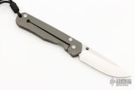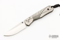The Umfaan is a smaller version of the Sebenza. Knife features a tumble finished blade and a titanium frame, blue anodized thumb studs. The frame is satin finished with computer generated graphics on the presentation side and a bead blasted finish on the back scale. Includes original box, leather pouch and COA dated September 10, 1999. Excellent condition.