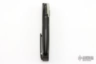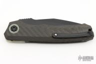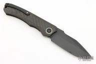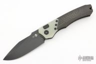 This Wraith Auto by Heretic Knives features a black blade with false top edge and notched thumbrest. The handle has a jade G-10 bolster, integral carbon fiber handle with a tip up black stainless steel clip, lanyard hole at the butt. Comes with original box and draw string bag. S/N 01236. Excellent condition.