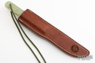 The Model 10 by Randall Made Knives is an ideal knife for yachtsmen and fisherman as well as for general household uses. This knife has a 5" stainless steel blade with notched thumbrest, has NASA etched on the back of the blade, .132" blade stock and .925" blade depth, full tang construction. The handle has lime green G-10 scales with brass pins and lanyard tube. Comes with a brown leather sheath with NASA Meatball logo. Comes with a Randall zippered case. Excellent condition. The G-10 on this knife was from the NASA space program, it was an insulator.
