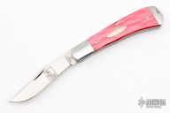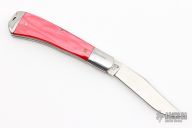 This Trapper from Queen Cutlery Company is a Bill Ruple design. It features satin finished blades with nail nicks. The handle has stainless steel bolsters, red covers over stainless steel liners, stainless steel spring. Has a couple light scratches, otherwise excellent condition. Includes a zippered case.