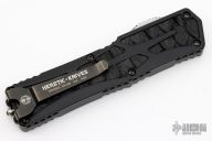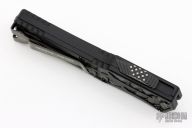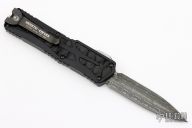 This Colossus by Heretic Knives features a double-edged Damascus blade with fullers.  The handle has a black aluminum frame with python inlays, checkered thumb slide, black stainless steel tip down clip. Comes with zippered case and box and COA.  S/N 026. Excellent condition.