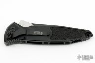 This Socom Elite Auto from Microtech has two toned drop point blade with notched thumbrest. The handle has a black aluminum frame with non-slip rubber inserts and a tip down stainless steel clip, black hardware. Dated 11/2022 and S/N 7969. Includes original box and paperwork. Excellent Condition.