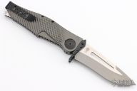 Just by opening this knife, you'll know how it got its name. The Quake XL is one of SOG's largest and most capable folding knives to date. It is powered by their SAT 2 (SOG Assisted Technology) that propels the blade open with just a push of a thumb. Instead of a thumb stud, the cross guard folds in when closing the knife and is used as the lever to assist with the opening motion. Combined with a thick dual-tone VG-10 blade, forged aluminum handles, full length stainless steel liners, the Quake XL is one of the most formidable folding knives available and it packs one heck of a punch.
