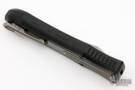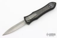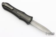 This knife is a Deadlock Model C by Grant and Gavin Hawk. It has a double-edged stonewashed blade. The handle has a carbon fiber and black aluminum frame with a tip down spring clip, titanium. The thumb slide on the handle is also titanium and handle has titanium overlays. Comes with a cloth pouch. Grant and Gavin Hawk set out to create a double action OTF with no blade play.... They did it, NO blade play. Comes with cloth pouch. Excellent Condition.
