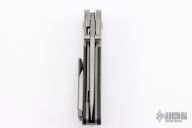 The Terrain 365 P38 features a two-tone drop point blade with a notched thumbrest and dual thumbstuds.  The handle features bead blasted titanium bolsters, liners, backspacer and a matching tip up pocket clip.  Carbon fiber scales.  Nice detent, lock up and blade seating.  Comes with original box, zippered case and papers. Excellent condition.