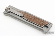 The smaller EXO-M has all the benefits of the full-size EXO from Reate Knives, but has even more to offer! For one, the smaller size makes this an even more convenient pocket knife. Plus, with a secure titanium pocket clip and lock, Reate ups their game with this gravity OTF Knife. A safety slide lock on the face of the handle is ideal for user safety, and the new pocket clip makes EDC carrying as easy as can be. By pinching the milled handle scales and dropping the frame at an angle, you can easily slide the blade in and out with nothing but gravity. If you haven't guessed it already, this means hours of quality fidgeting! That aside, the build and materials of this knife are Reate standard: simply excellent and endlessly functional. Like the EXO, the EXO-M boasts flawless fit and finish, smooth action, and a razor edge to meet your cutting needs. It includes a leather slip for safe carrying as well as the titanium clip.