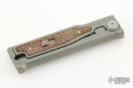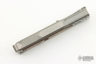 The smaller EXO-M has all the benefits of the full-size EXO from Reate Knives, but has even more to offer! For one, the smaller size makes this an even more convenient pocket knife. Plus, with a secure titanium pocket clip and lock, Reate ups their game with this gravity OTF Knife. A safety slide lock on the face of the handle is ideal for user safety, and the new pocket clip makes EDC carrying as easy as can be. By pinching the milled handle scales and dropping the frame at an angle, you can easily slide the blade in and out with nothing but gravity. If you haven't guessed it already, this means hours of quality fidgeting! That aside, the build and materials of this knife are Reate standard: simply excellent and endlessly functional. Like the EXO, the EXO-M boasts flawless fit and finish, smooth action, and a razor edge to meet your cutting needs. It includes a leather slip for safe carrying as well as the titanium clip.