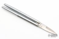This "The Master" pen balisong by Taylor/Seto features a satin finished blade and a handle that looks like two pens. Has a few light scratches, otherwise excellent condition. Comes with original box.