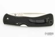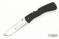 This Gunsite II lockback folders by Cold Stel feature a partially serrated tanto blade with fileworked thumbrest and dual thumbstuds. The handle has black composite frame with an integral clip. Nice lockup and blade seating. Excellent condition. Comes with original box.