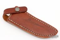 This is a brown leather High Ride Sheath for a Model 3-5 by Randall Made Knives. Made by Sullivans by Gutcher. Has some marks on the sheath, otherwise good condition.