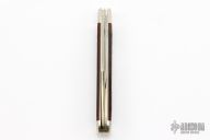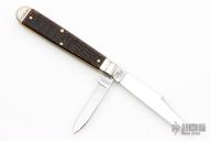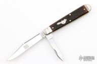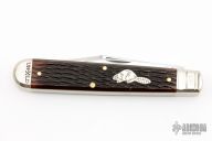 This English Jack by Northfield Knives features polished blades with nail nicks. The handle has nickel silver pinched and fluted bolsters, Autumn Gold Jigged Bone covers with a nickel silver beaver escutcheon, brass liners/pins. Has half stops. Comes with original tube. New condition.
