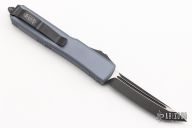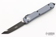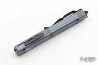 This Ultratech OTF automatic features a T/E black finished tanto blade. Gray aluminum handle with tip down stainless steel clip. Glass breaker. Comes with original box and papers. Serial #78506 and dated 03/2017. Excellent condition.