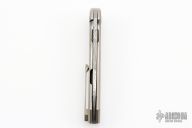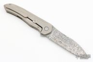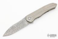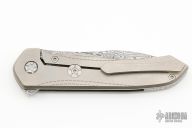This Servo by Brown Knives features a Damasteel drop point blade and flipper. The handle has a blasted and milled titanium frame, Damasteel backspacer, titanium over travel stop and tip up clip with hidden screws. Nice detent, blade seating and lock up. Rides on bearings. Comes with original hard case with COA. Excellent condition.