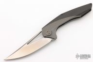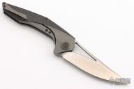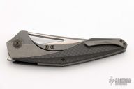 This Zeta Flipper by WE Knives features a satin finished M390 blade with flipper. The handle has a stonewashed titanium and carbon fiber frame, tip up matching titanium clip and backspacer, stainless lockbar insert. Nice detent, lockup and blade seating. Has ceramic ball bearings. Comes with original box and papers. This knife is #302 of 700. Excellent condition.