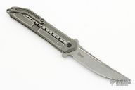 Todd Begg Knives is happy to announce the formation of the new Steelcraft Series with the release of the first full production knife, The Sun Tzu Kwaiken. With the Sun Tzu Kwaiken they have joined forces with Reate Knives to bring you the highest quality in design and function that they feel is attainable in a production knife. All of the Steelcraft Series knives will be designed with an emphases on precision workmanship to showcase that a production knife can truly be a thing of excellence. They have made all the necessary steps to insure that Steelcraft will deliver a knife that will stand up to scrutiny and surpass all prior experience of what a production knife can be. 6Al4V titanium handle CPM-S35VN blade steel Framelock with steel lock tip insert 3D machined pocket clip Ceramic detent Ceramic IKBS Design won “Best Tactical Folder” at the 2014 Knifemakers Guild show. Excellent condition. Comes with original box and papers.