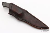 This Fighter by Joseph Szilaski Design features a polished finished blade with false top edge, .181" blade stock and 1.124" blade depth. The handle is comprised of carbon fiber scales with red liners over full tang construction. Includes leather sheath and COA. Has some light scratches, otherwise excellent condition.