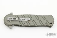 A.F.D. was designed for one purpose - to meet the high demands and standards required by the professionals who rely on only the best, in actual field conditions. A Dietmar Pohl design, this knife represents the optimum in function. The handle is CNC machined using 6061-T5-aluminium and is designed for a secure and comfortable grip. The handle is anodized for surface protection and the heavy duty clip allows for tip-down carry. Stainless steel liners. The dagger style blade sharpened on one side only, is a beefy 3/16" thick and made of CPM-S60V steel (formerly CPM-T-440V). The blade, even though only sharp on one side, sits fully protected and seated securely in the handle and is designed for lightning fast deployment. Overall length: 9 7/16". Blade length: 4". Weight 6.3 oz. Has been resharpened, has some light scuffs and scratches, otherwise good condition.