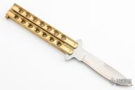 This Golden Dragon is a 1980's classic Taylor/Seto Balisong with brass handles. Has a satin finished blade with a sharpened top edge. Excellent condition. Comes with a Velcro case.