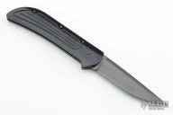 This auto by Charlie Ochs features a black blade and black aluminum handle. Nice lockup and blade seating. Excellent condition. Comes with a zippered case.
