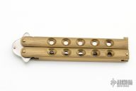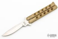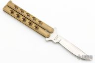 This Balisong by Parker Cutlery Company features a satin finished blade. The handles are brass channel construction. Comes with a velcro case. Has a couple light scratches, otherwise excellent condition.