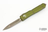 This Ultratech by Microtech features a bronzed apocalyptic double-edged blade with fullers. The handle has a contoured green aluminum frame with bronzed stainless steel hardware. Comes with original box and papers. Excellent condition. Dated 10/2022 and s/n 260909.