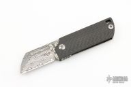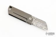 This BabyX EDC flipper by Darriel Caston features a Damasteel wharncliffe blade with notched thumbrest and flipper. The handle has a carbon fiber and anodized titanium frame with a lanyard hole at the butt. Nice detent, lockup and blade seating. Has a couple light scuffs, otherwise excellent condition.