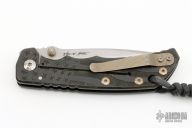 This framelock folder by Spartan Blades features a black PVD finished drop point blade with dual thumbstuds and a notched thumbrest. The handle has a black PVD finished titanium frame with tip up titanium clip. Has nice detent, lockup, and blade seating. Has scuffs and scratches, has been used and carried, otherwise good user condition.