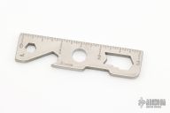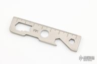 "The Atwood R-Three Seven is a compact mini wrench tool made of titanium. This tool features a 1/4" hex, 5/16" wrench, cap lifter, 8, 9, 10mm wrench set and center opening sized for 3/8" spinner core. A handy 3-inch ruler scale is engraved on the front side and a 7cm metric scale graces the back." Excellent Condition. Comes with bag and card.