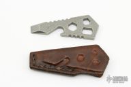 The Atwood Ghost is a compact mini tool designed for pocket, keychain or pendant style carry.  Made of CPM s30V.  Features include : Prytip, screwdriver, cap lifter, 5/16" and 1/4" hex wrench openings and oxygen bottle wrench.  The unique wavy edge provides enhanced grip and added decoration.  Includes original bag and card. Excellent condition.