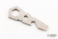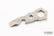 The Atwood Poltergeist is a compact mini tool designed for pocket or keychain carry. Made of CPM S35V steel with the Area 51 grind. Features include: Prytip/screwdriver, bottle opener which doubles as a 5/16" wrench, 1/4" and 1/2" hex wrench openings. A slightly larger version of the Ghost, designed for simplicity and rugged good looks. Comes with bag and card. Excellent condition.
